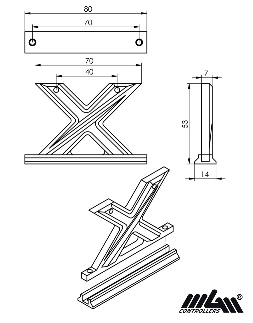 Aluminum X Mount designed by MGM CONTROLLERS used to mount our electronic speed controllers TMM 25063-3 and TMM 40063-3.